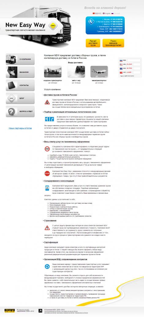 «New Easy Way» — это группа компаний, специализирующихся на транспортной логистике.