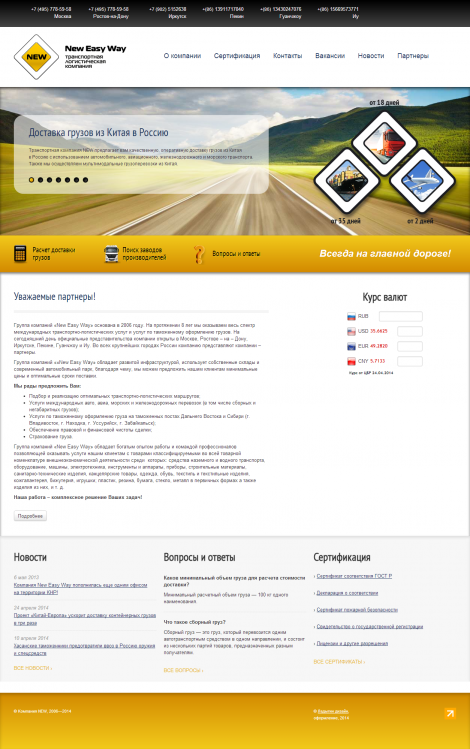 Группа компаний «New Easy Way» основана в 2006 году. На протяжении 8 лет компания оказывает весь спектр международных транспортно-логистических услуг и услуг по таможенному оформлению грузов. На сегодняшний день официальные представительства компании открыты в Москве, Ростове-на-Дону, Иркутске, Пекине, Гуанчжоу и Иу. Во всех крупнейших городах России компанию представляют компании-партнеры.